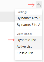 However, if the view mode is Active or Classic List, click on the wrench icon to change it.